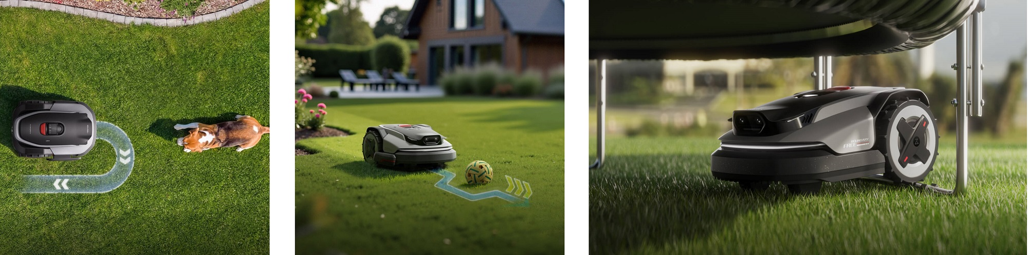 📱 Sterowanie smart – aplikacja mobilna: harmonogramy, do 10 stref, indywidualne wzorce koszenia.