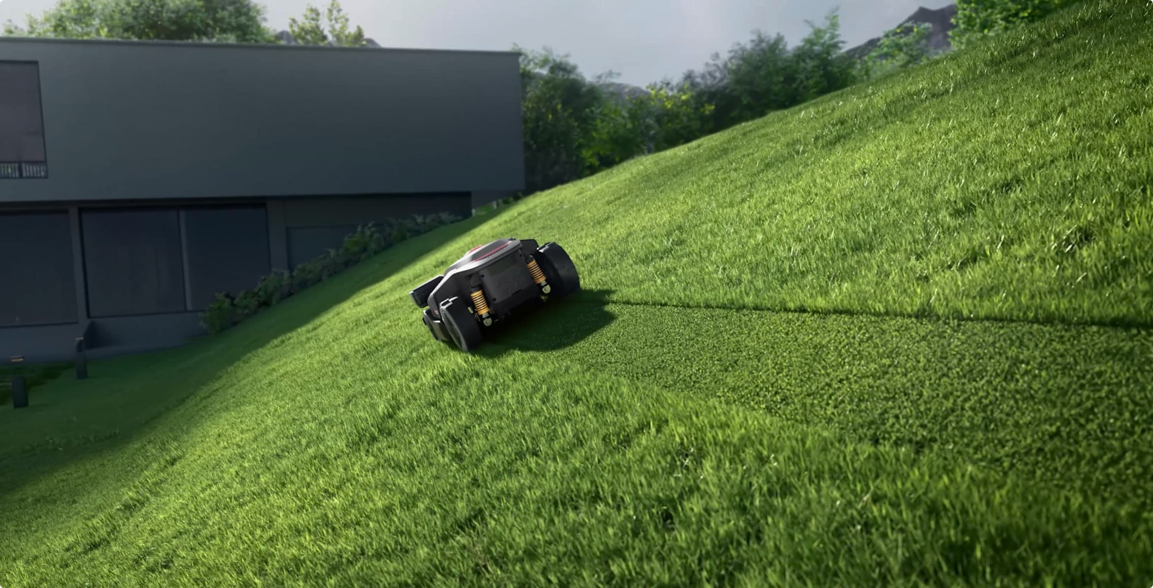 Dzięki adaptacyjnemu podwoziu i podwójnym niezależnym sprężynom, Dynamiczny System Zawieszenia zapewnia jednocześnie wysoką stabilność platformy roboczej oraz precyzyjne utrzymanie pozycji układu tnącego 🌿🤖. Rozwiązanie to umożliwia płynne pokonywanie nierówności, zagłębień oraz trudnego, zróżnicowanego terenu bez utraty równowagi czy jakości koszenia.System aktywnie kompensuje zmiany podłoża w czasie rzeczywistym, utrzymując stały kontakt kół z nawierzchnią oraz równomierną wysokość cięcia ✂️. Dzięki temu ostrza pracują w optymalnym zakresie, nawet gdy robot porusza się po wybojach, pochyłościach lub miękkim gruncie.Połączenie elastycznego zawieszenia i niezależnych sprężyn zwiększa zdolność adaptacji do terenu, redukując drgania i poprawiając kontrolę nad ruchem urządzenia 🚜. W efekcie kosiarka porusza się płynnie, stabilnie i precyzyjnie, zachowując wysoką jakość koszenia w każdych warunkach ogrodowych