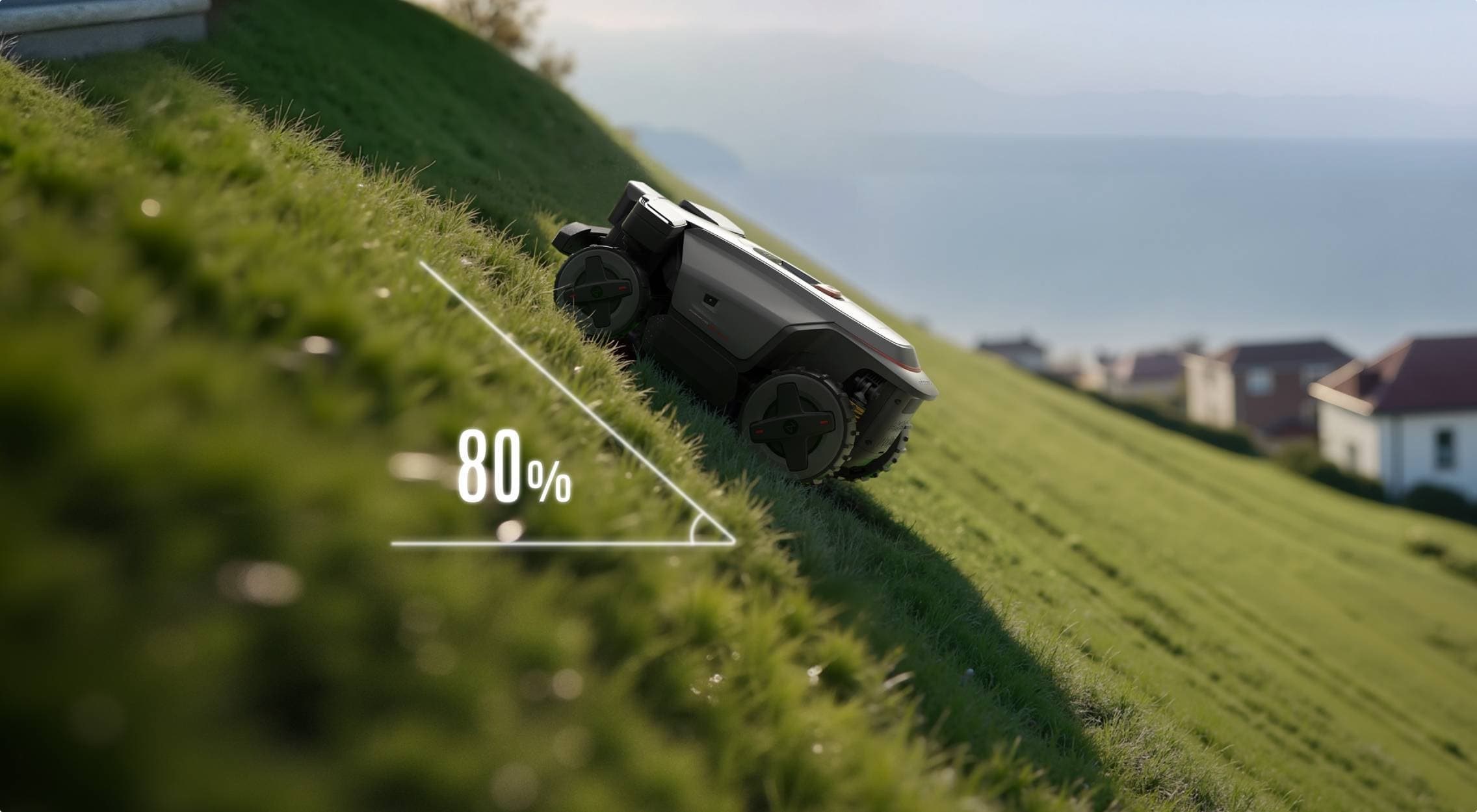 Zbudowany, aby podbić każdy teren . RockMow Z1 został zaprojektowany z myślą o pracy w warunkach, które dla tradycyjnych robotów koszących stanowią poważne wyzwanie. Dzięki zaawansowanemu napędowi na wszystkie koła (AWD) 🚜 urządzenie utrzymuje stabilną trakcję nawet na wymagających, nierównych i śliskich powierzchniach, zapewniając płynny ruch bez utraty przyczepności. Konstrukcja robota pozwala na pokonywanie nachyleń do 80% (38,7°) ⛰️, co czyni go jednym z najbardziej wydajnych rozwiązań w swojej klasie pod względem zdolności terenowych. Niezależnie od tego, czy trawnik obejmuje strome zbocza, pagórkowate fragmenty ogrodu czy zróżnicowane ukształtowanie terenu, Z1 zachowuje stabilność i precyzję ruchu.